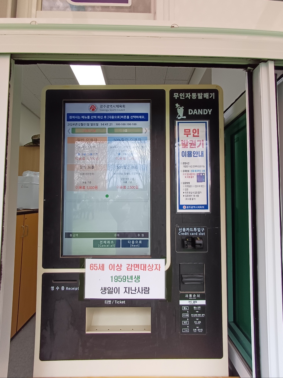 오직 무인발권기를 통한 현장접수만 가능합니다