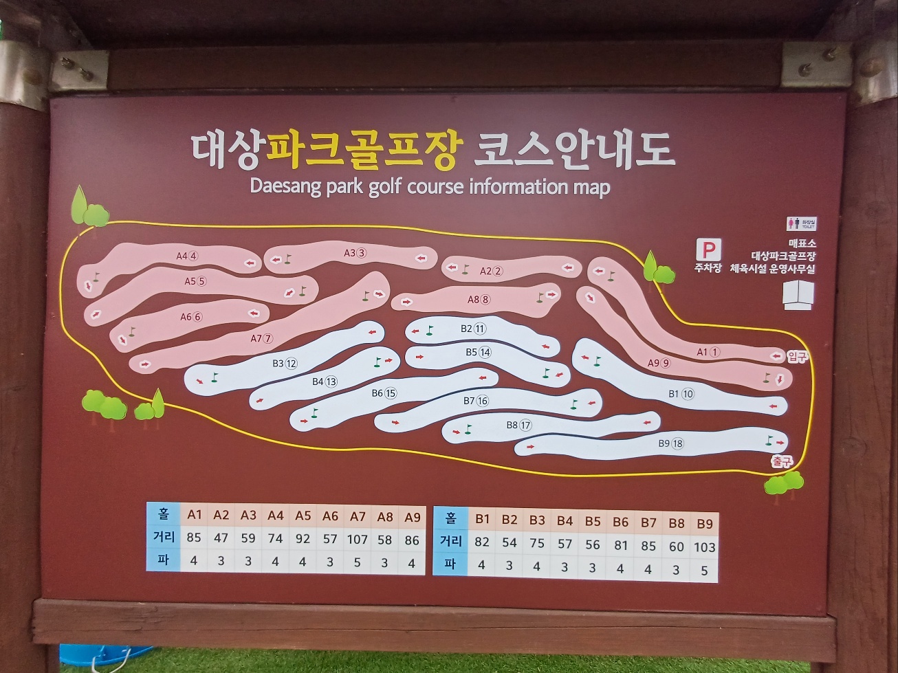 A코스와 B코스 각각 9홀로 구성되어 있으며, 다양한 난이도의 코스를 제공합니다